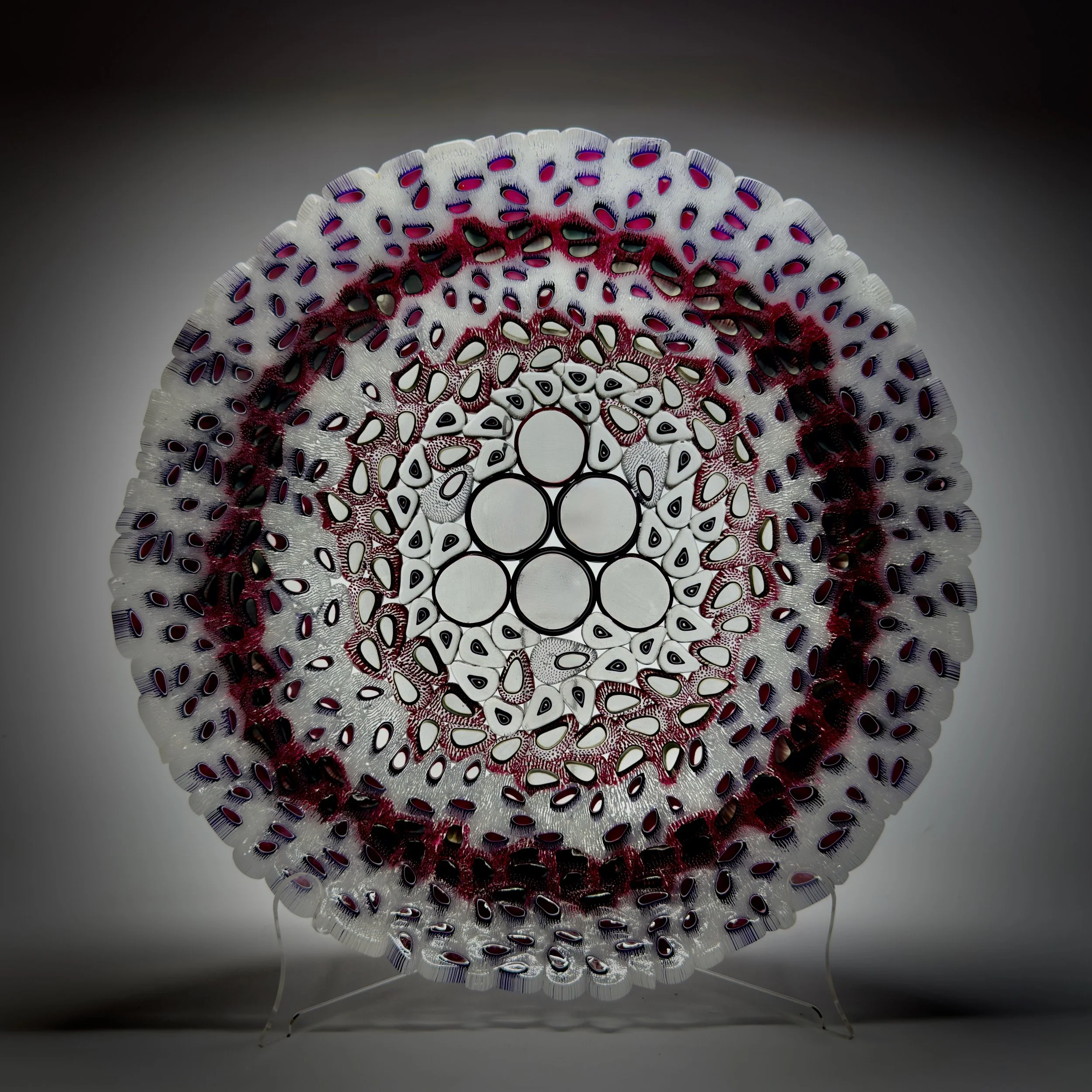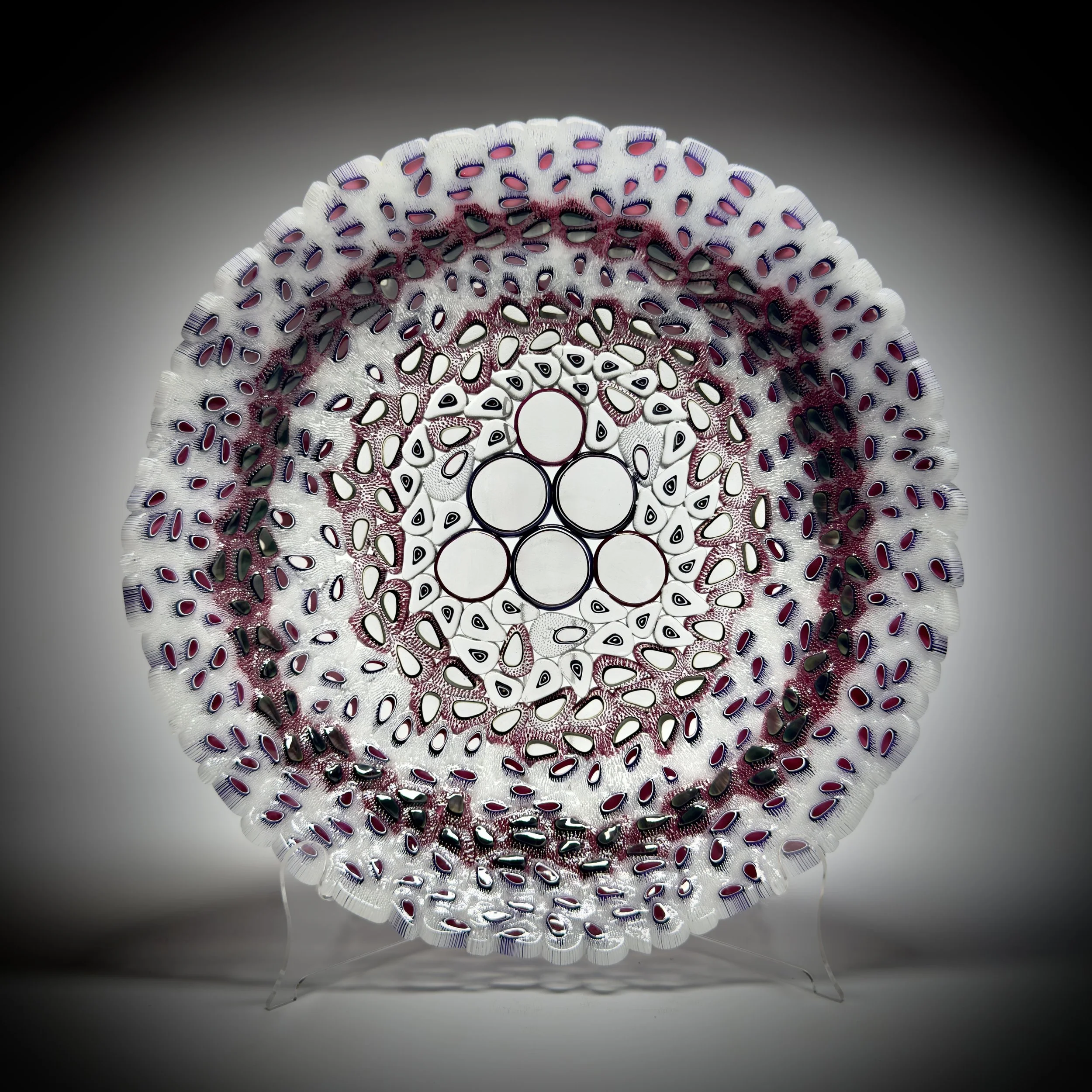 Named from the Latin “patera,” meaning a shallow bowl, and “mosaica,” for its intricate mosaic design, this collection celebrates the art of the Murrini technique. Many pieces feature mandala-inspired patterns, long regarded as sacred symbols of harmony and balance. Perfect for display on a plate stand, where the light can illuminate every detail, or resting as a centerpiece bowl to bring beauty and meaning to any space.